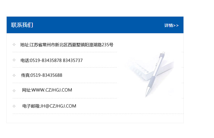 傳真:0519-83435688    郵編:213135    網址:WWW.czjhgj_com.finerse.com    電子郵箱:JH@czjhgj_com.finerse.com